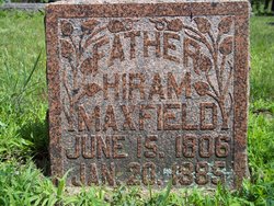 A birth record for Hiram has not been found clearly linking him to Joshua and Ascenath Maxfield. However, the 1835 New York state census placed Hiram, Varnis and Joshua next to each other in Fort Ann, Washington County, New York, all censuses give his place of birth as New Hampshire, and his birth date, from his grave stone, places him within the categories of age/sex groupings in the Joshua Maxfield household in the 1810 census. Hiram is also closely associated with Varnis Maxfield, both appearing in the same township in Michigan in the 1840 census, along with David Irish, the father of their wives.